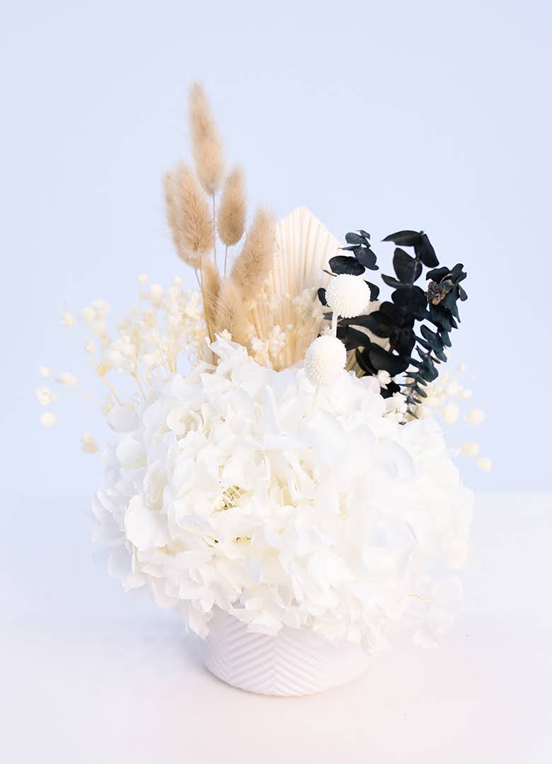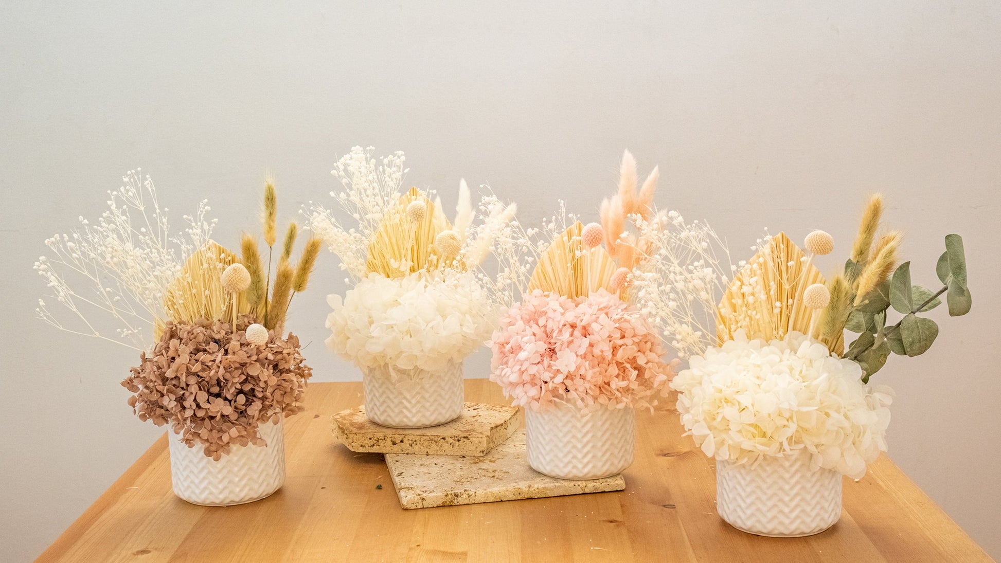 Say goodbye to dull spaces and add a little colour and life with the Mini Dried Flower Arrangement.